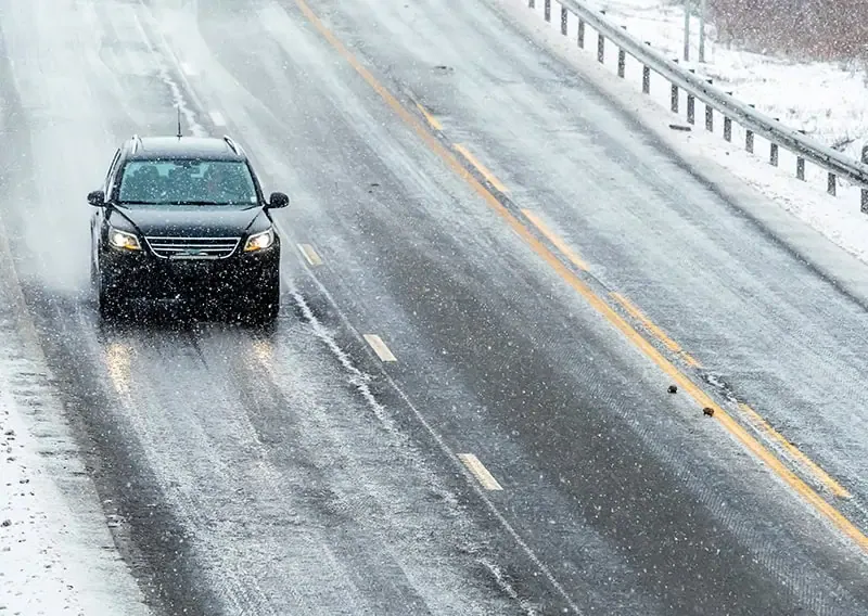 - Slow down on rough or unfamiliar roads, especially at night or when it’s below 40°F